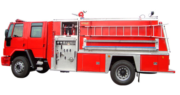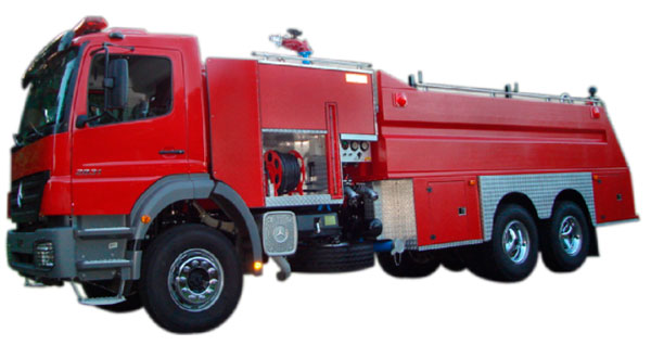 Veículo de combate à incêndio cabine Dupla com capacidade entre 3.000 à 5.000 litros de água com bomba de incêndio de 500 à 750GPM, com vasta compartimentação de carga tipo persianas ou monobloco equipado com carretel de mangotinho, canhão monitor, guincho elétrico, torre de iluminação.