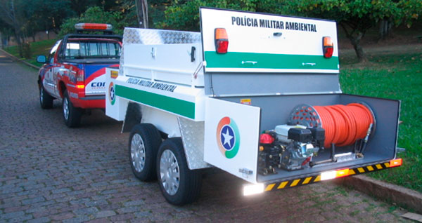 Kit Rápido de Combate à Incêndio, modelo RBT – (Reboque Bomba Tanque), rebocável desenvolvido para combater incêndios florestais, composto de Bomba de média pressão e baixa vazão, tanque especial de até 1.500 litros, carretel de mangotinho, esguicho com regulagem de jato, motor á gasolina, torre de iluminação, gerador de energia, abafadores,’ entre outros, montado em reboque especial a ser rebocado por Pick – UP, possuímos diversas configurações conforme a necessidade do cliente.